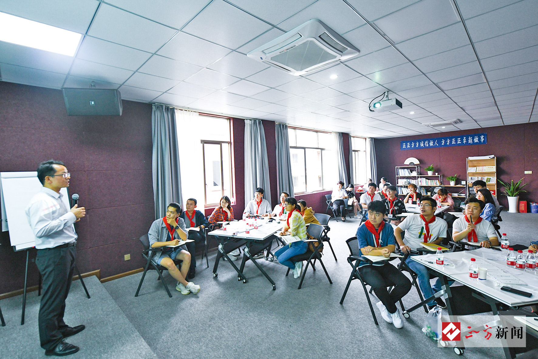在为期三天的培训中,集团人力资源部、企业文化部、信息部分别带来了职业发展、制度流程及入职指引、形象礼仪、职场高效沟通、IT基础知识等课程,正方本家大健康事业部总经理陈锋带来《健康管理》课程。集团董事长徐伟星、总裁黄斌元亲自走上讲台,与新员工畅谈正方发展历程和企业文化。